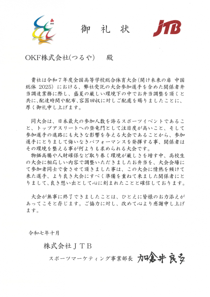 心温まるお礼状をいただきました。
